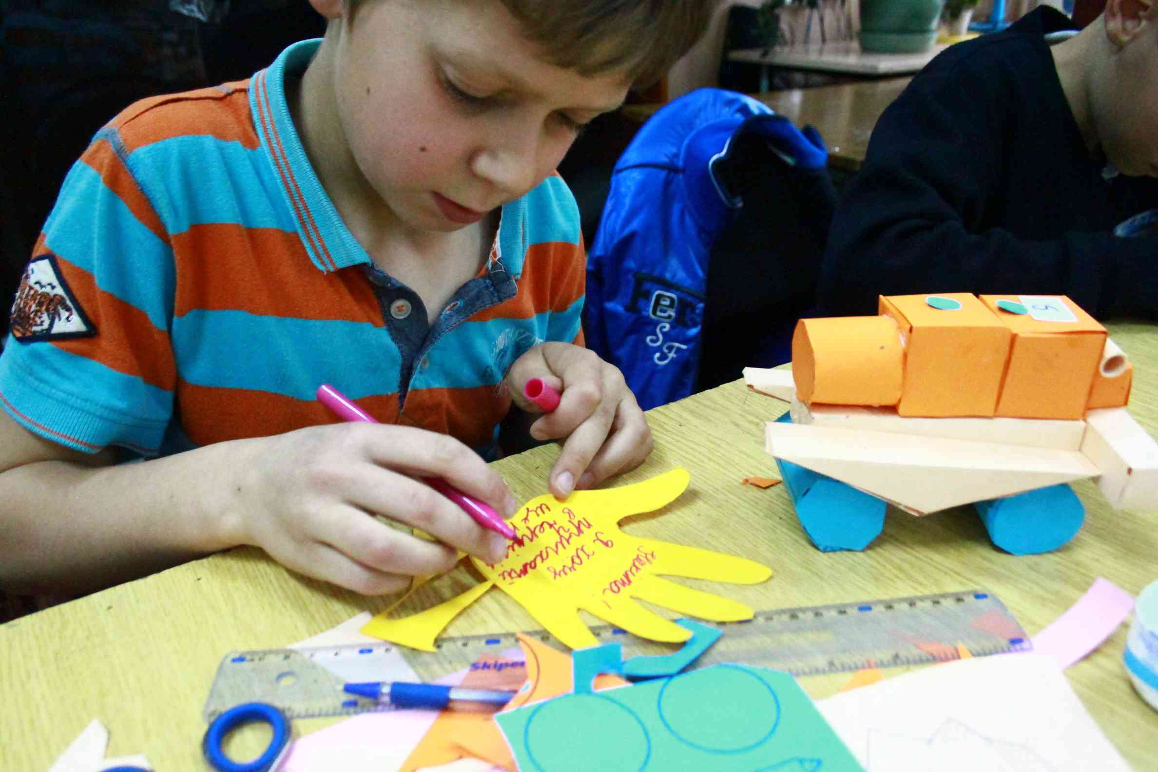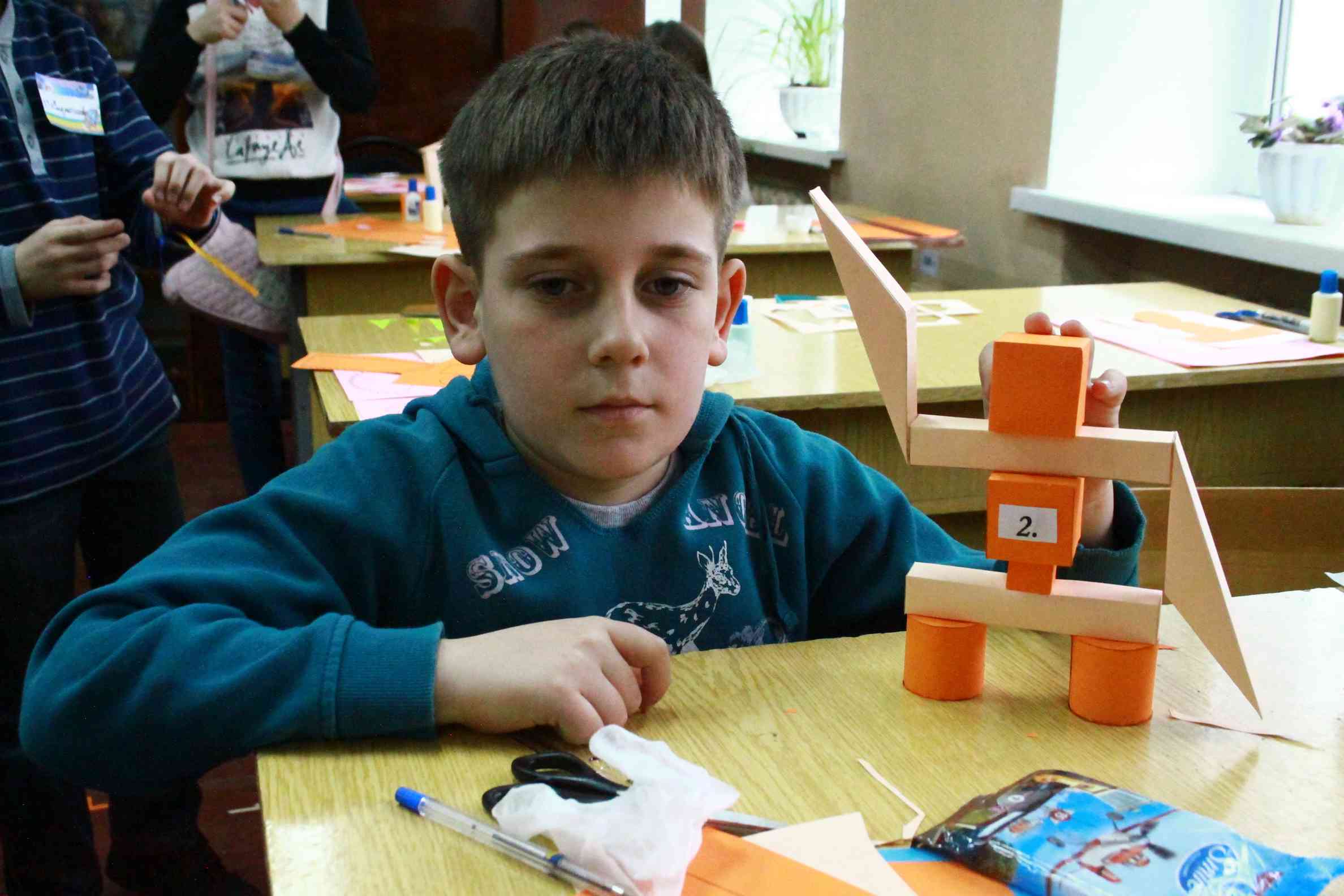 У творчому завданні учасники створювали композицію за власним задумом з геометричних фігур які вони самі виготовляли, та захищали свою композицію коротким виступом. При оцінюванні увага зверталась на оригінальність та креативність виробу.